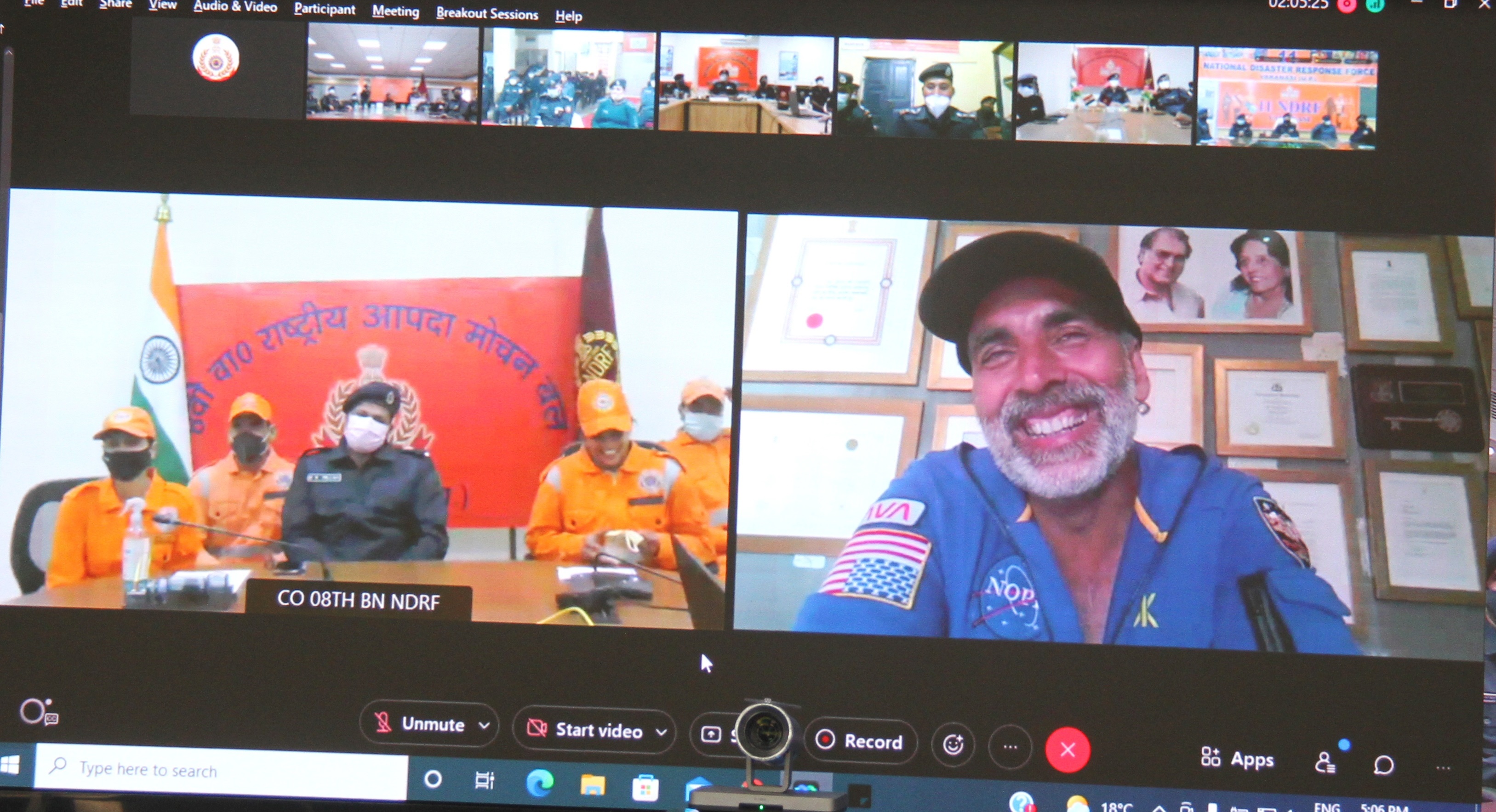 On later half of the day, the renowned Bollywood actor Mr. Akshay Kumar interacted with the NDRF personnel through virtual mode and shared some important tips about physical fitness. He frankly replied to various questions raised by NDRF personnel. He brought lot of life and cheers to the whole interaction and DG NDRF profusely thanked him for taking time out.
